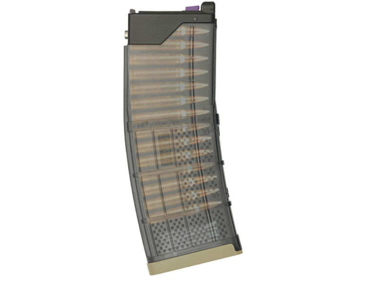 Încărcătorul airsoft pe gaz (GBBR) EMG Lancer L5 AWM .300BLK – 30 bile este o replică fidelă a modelului real Lancer Systems L5, proiectată special pentru platformele Tokyo Marui MWS și CGS AR15 / M4 GBBR.